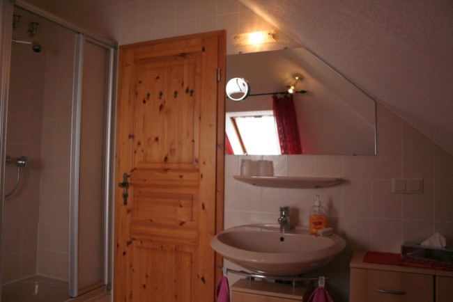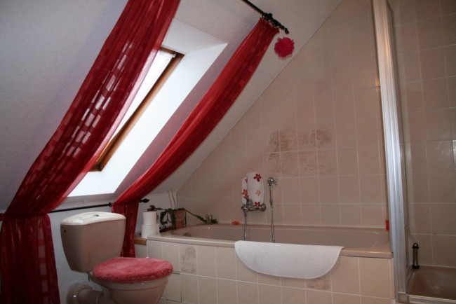 Das geräumige Bad mit Dusche und Badewanne.