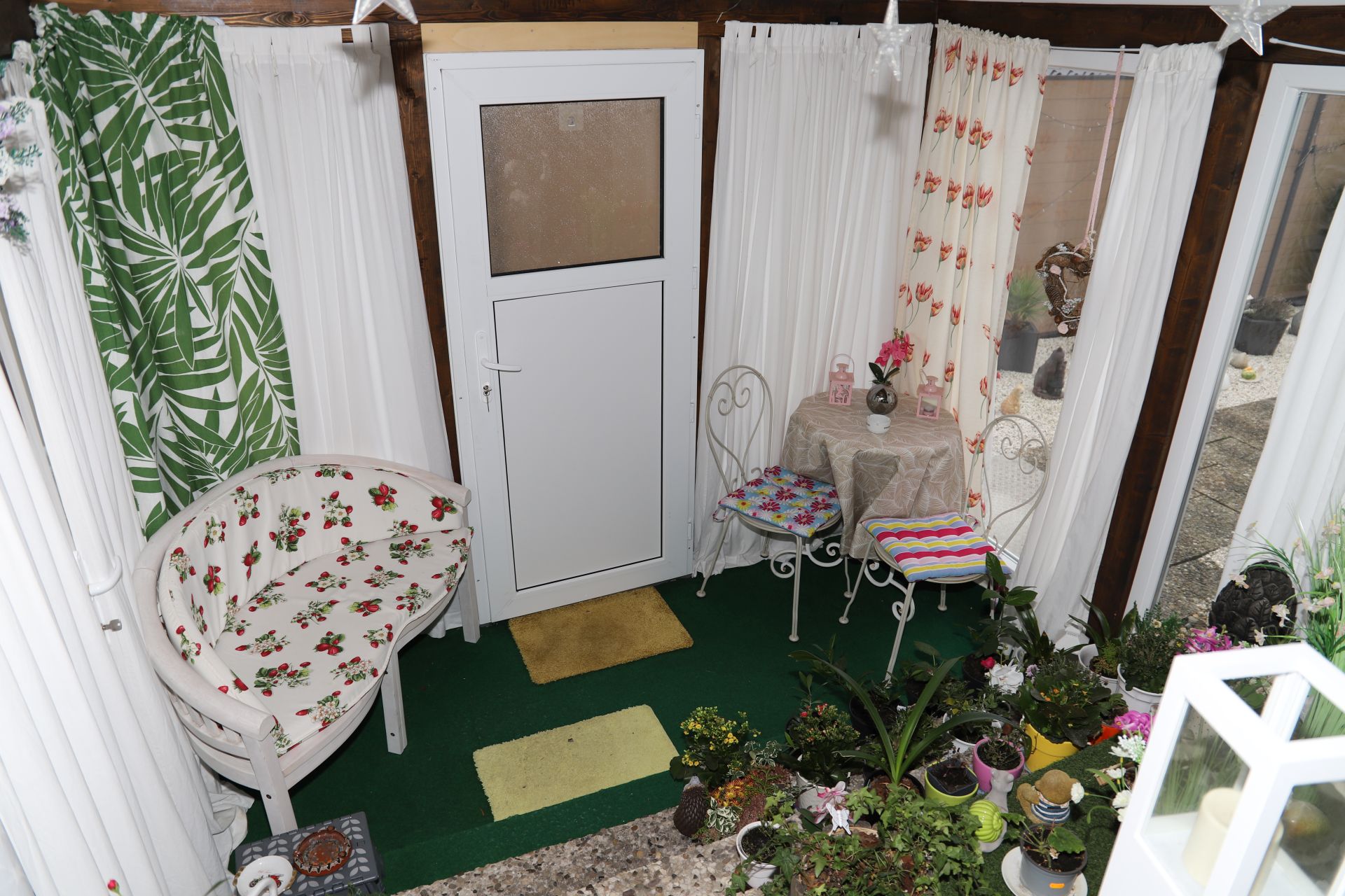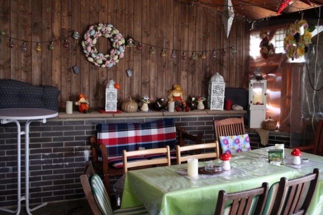 Raucherstübchen mit Sitzgelegenheit.